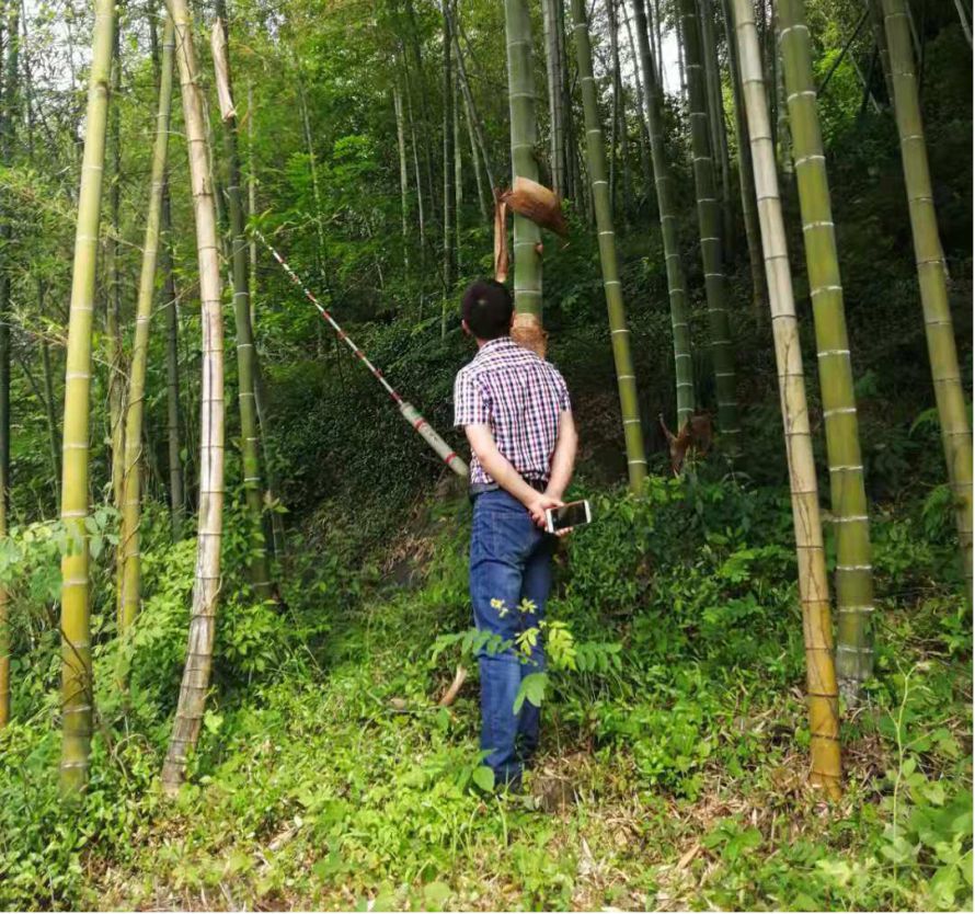 第二站已到下午,转转来到夏履,夏履镇位于绍兴西北部,境内“九山一田”,山林覆盖率高,山水资源丰富,生态环境极佳,多山丘,多竹林。我们来到夏进公路、前茅线等地检测查看当地毛竹内是否含有竹螟, 该虫危害毛竹新竹,也危害淡竹、刚竹、苦竹等竹种。当竹螟危害毛竹、淡竹严重时,叶片全部吃光,造成竹林成片枯死,降低竹材质量,影响竹鞭生长及次年出笋量。翌年出笋减少30%~50%,新竹眉围下降20%~30%。
